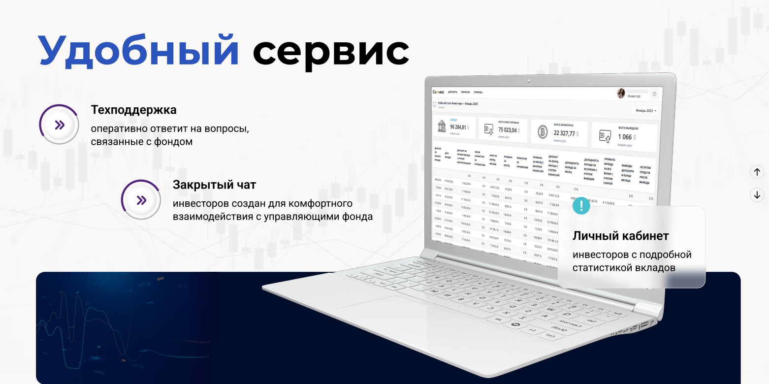 Эти данные невозможно проверить, так как Coinvest не предоставляет публичной отчетности. Подобные заявления вызывают сомнения. А цифра в 100 инвесторов выглядит очень скромно по сравнению даже с самыми маленькими фондами.